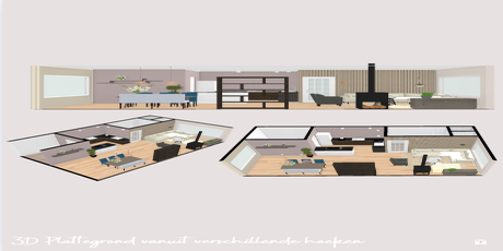 Deze klant wilde de woonkamer en keuken vernieuwen. Studio L-Vorm is gevraagd een voorstel te maken voor een kleuradvies en een meubelplan om optimaal gebruik te maken van de ruimte. Een sterke wens was om de basiskleuren rustig te houden, op zowel de muren als in de meubels. Hier is dus rekening mee gehouden in de uitwerking.